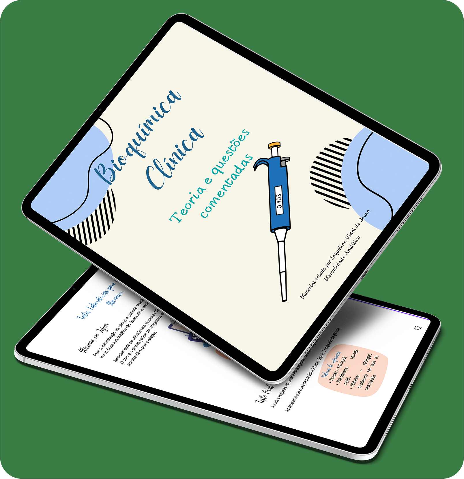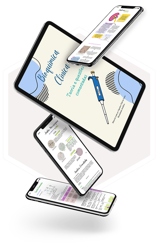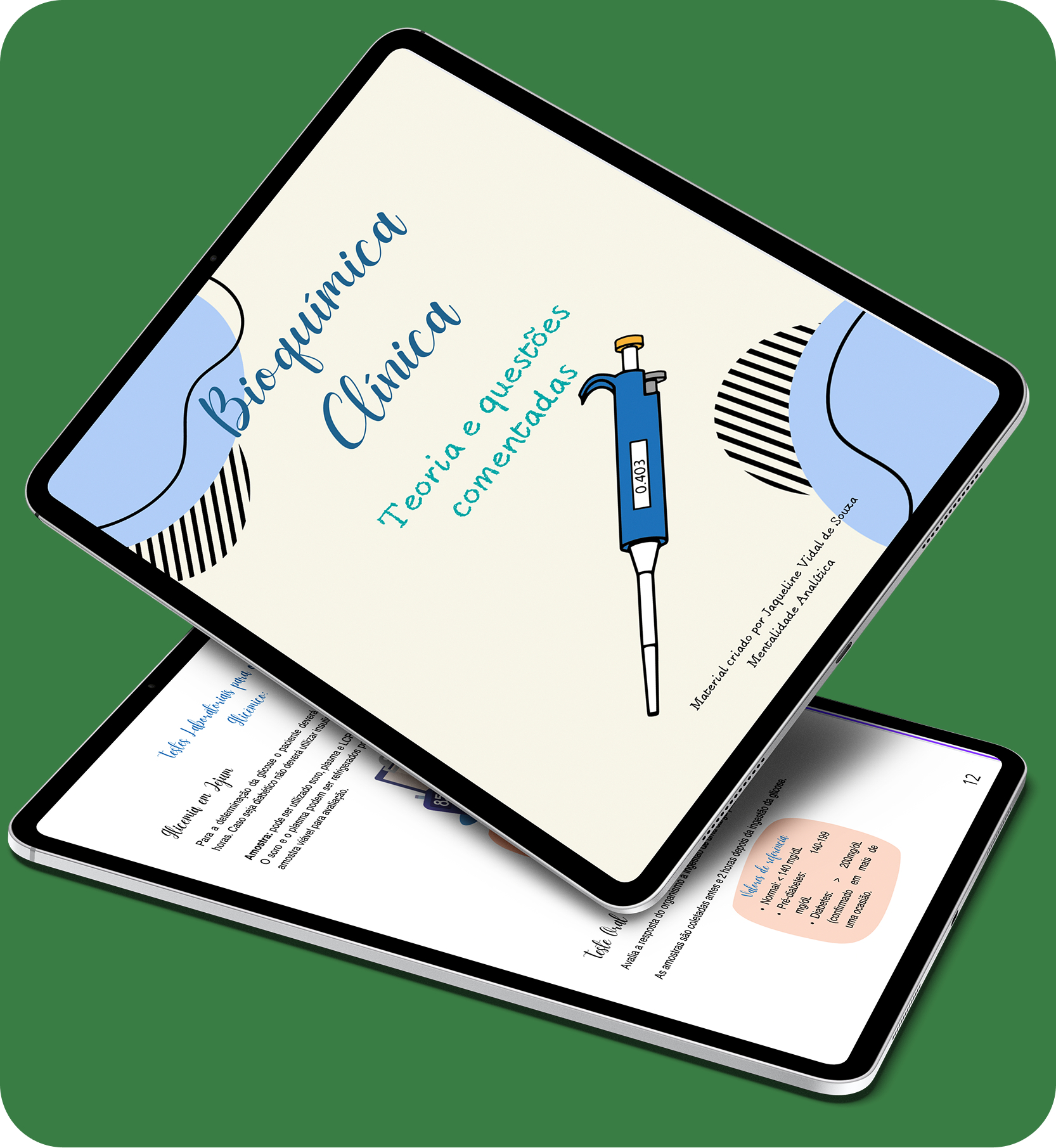 Aqui você encontra os principais exames bioquímicos, os valores de referência mais cobrados e questões comentadas com explicações didáticas, para você entender e não só decorar.