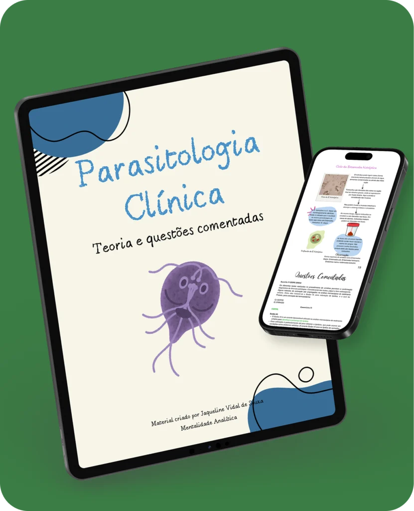 Aqui você encontra os principais parasitas cobrados nas provas, explicações diretas e questões comentadas com linguagem didática, como se tivesse um professor ao seu lado. Ideal para revisar, fixar o conteúdo e acertar as questões com segurança na hora da prova.